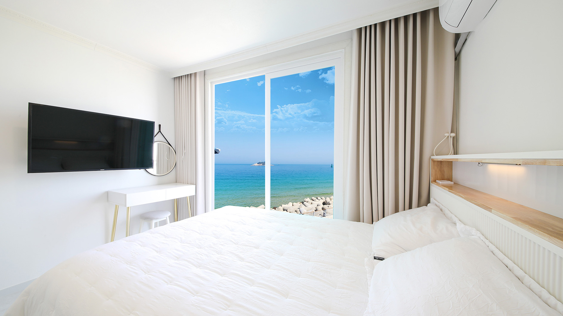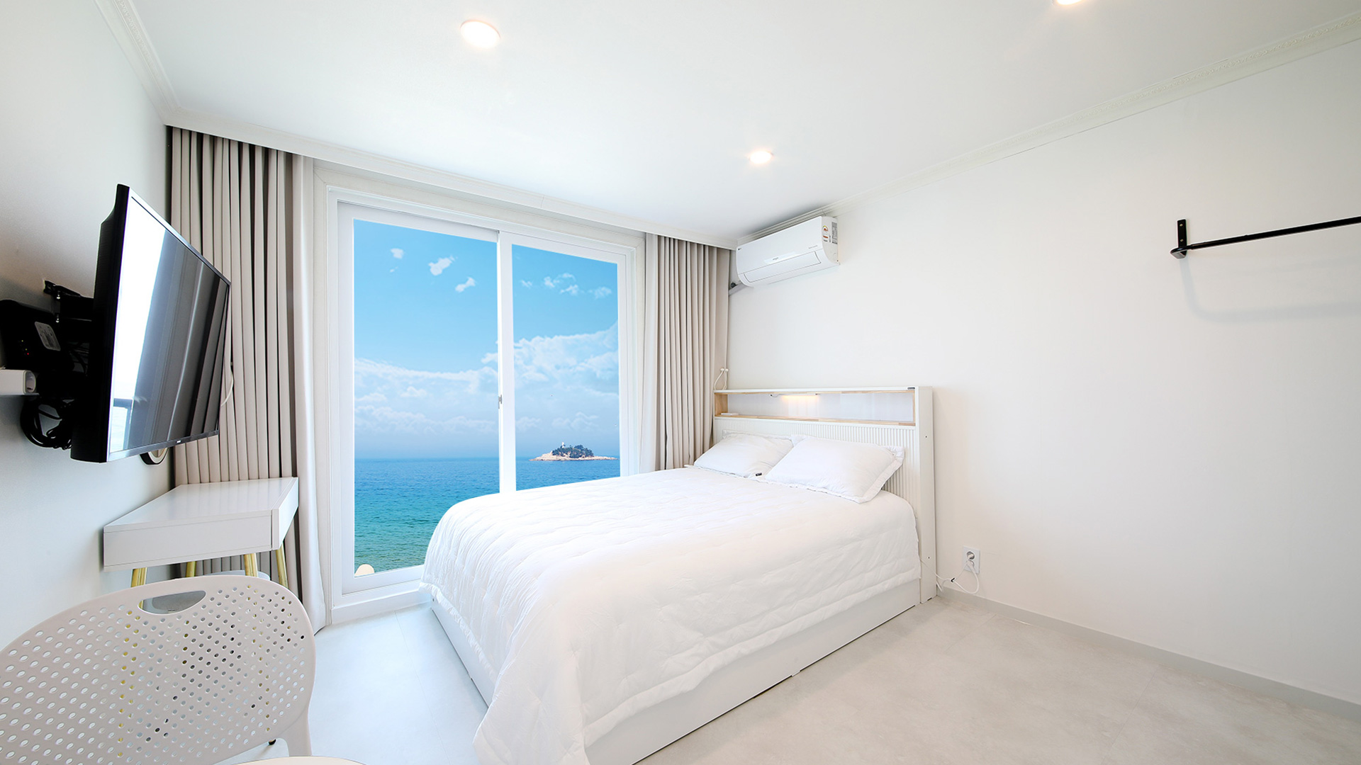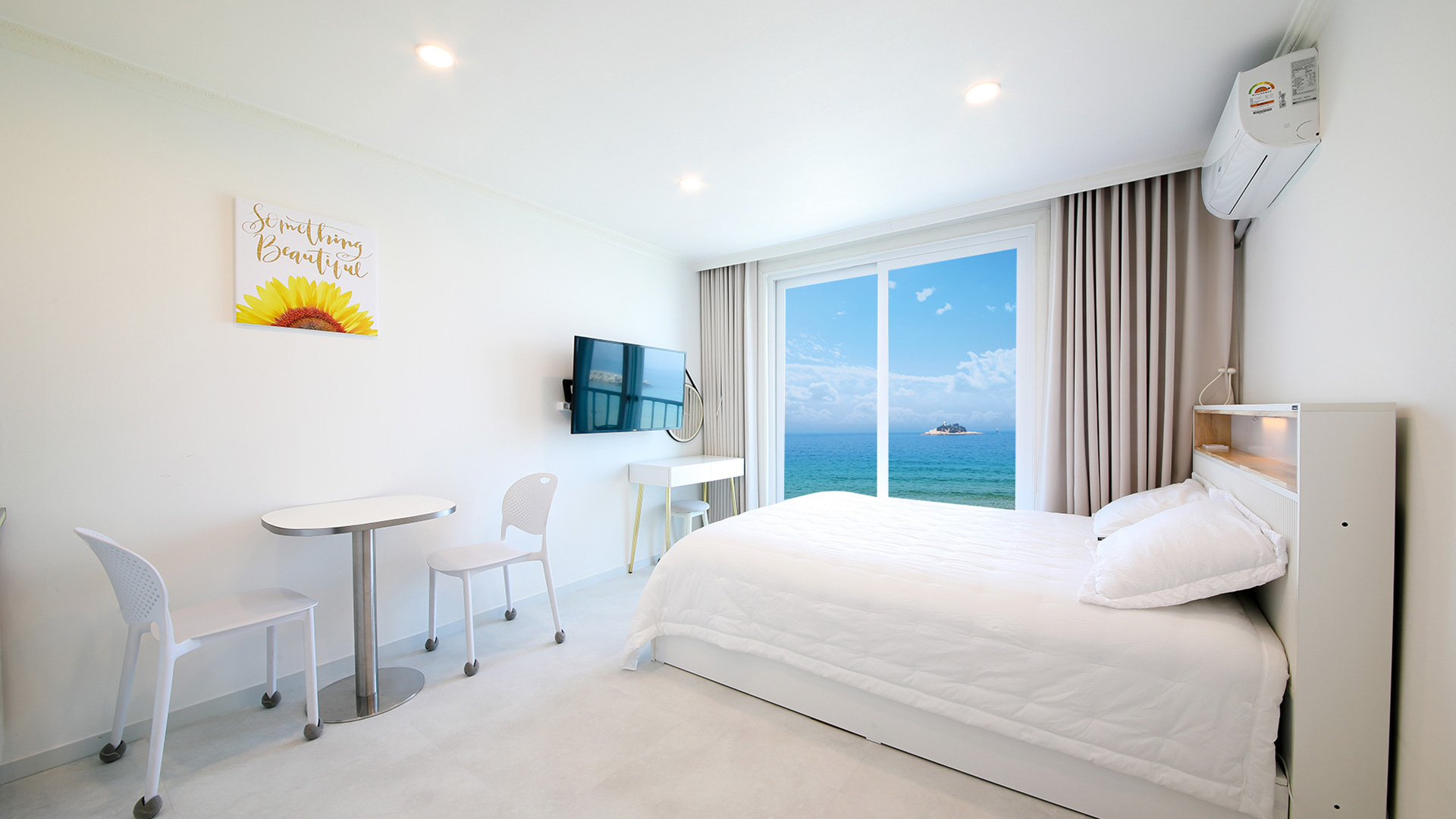 | 전객실바다전망,객실에서 일출,파도소리감상,객실에서 조도섬이한눈에잡힐듯보이는커플룸입니다. 전 객실 WIFI, 인터넷 선, 올레쿡TV |
